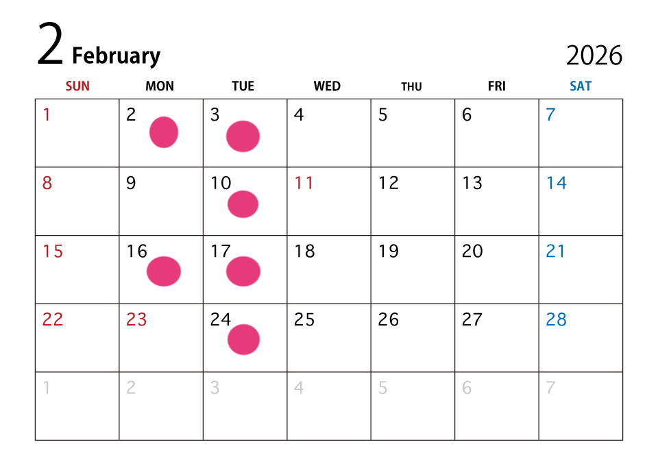 2月の定休日のお知らせ